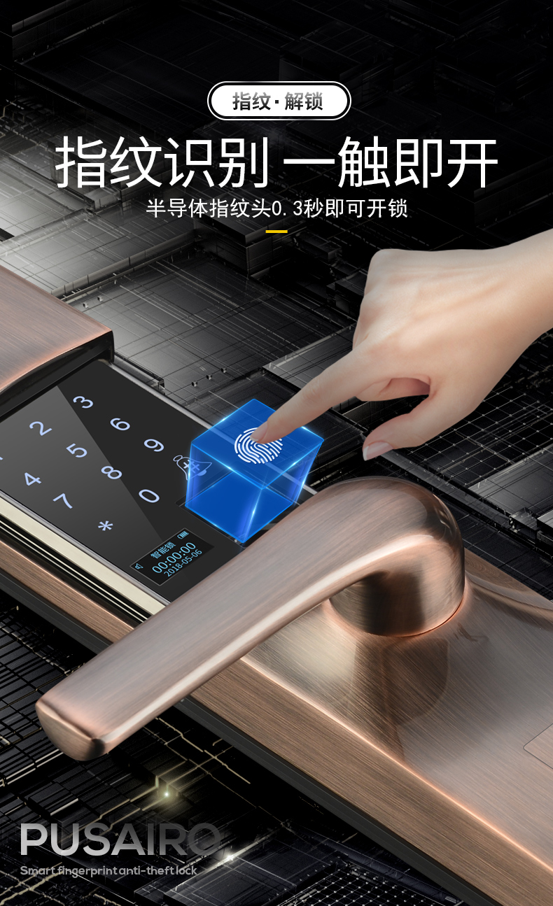 开封滑盖指纹锁家用防盗门